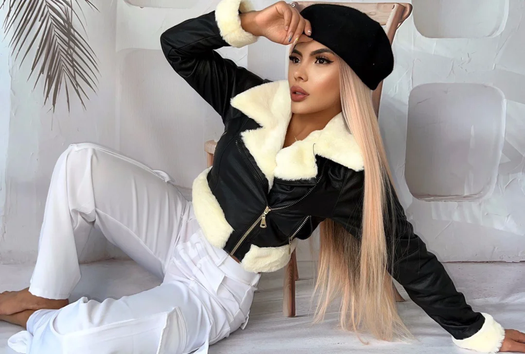 Chamarra corta en cuero textil N27A1